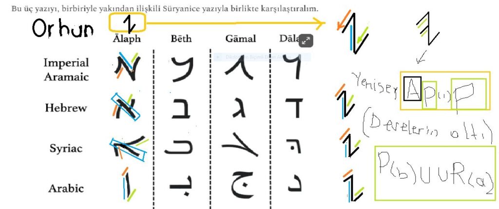 “Bu verilere ve çalışmanın sonuçlarına göre bütün damga dizgelerinin (abece) kökenleri atalarımız Türkler tarafından kurgulanmıştır. Bunun dışındaki görüşler değersizdir kanımca!” İşte bu konuda örnek bir çalışma,